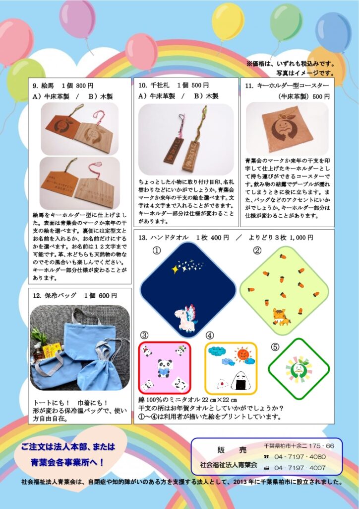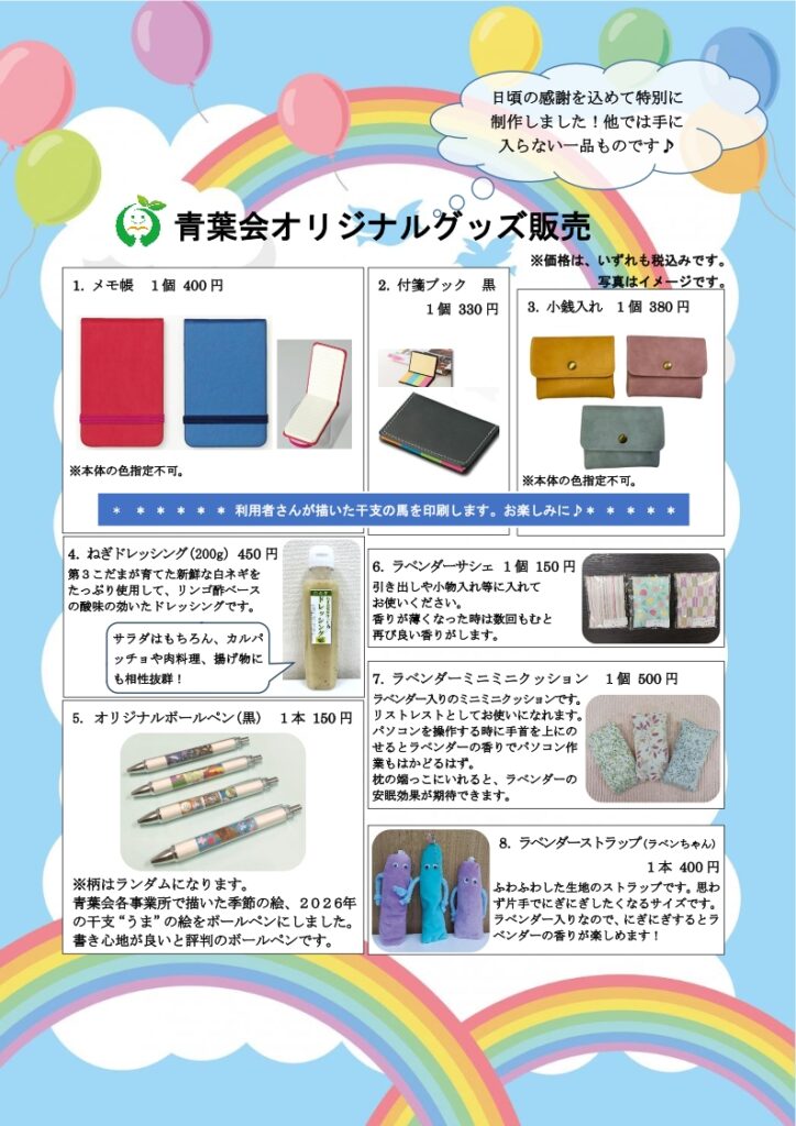 青葉会を応援してくださる皆様からのたくさんのご注文をお待ちしております(収益の一部は、販売を担当する作業所利用者工賃となります)。